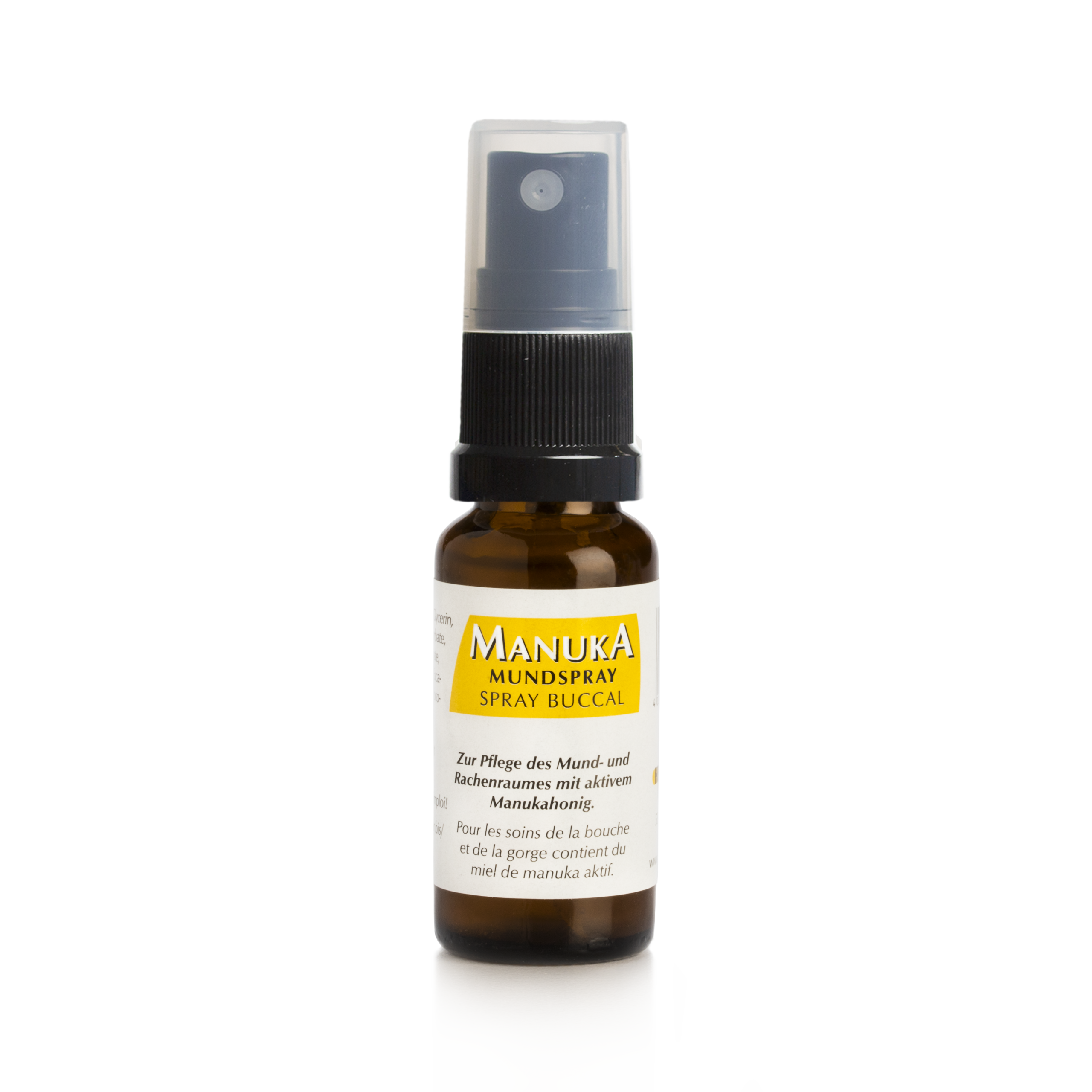 Das Manuka Honig Mundspray ist ideal zur natürlichen Pflege des Rachenraums und kann wohltuend bei einem Kratzen im Hals sein. Es eignet sich speziell für all die, die gerne auf Alkohol verzichten möchten. Durch den neuseeländischen Manuka Honig schmeckt das Spray angenehm süß, was es auch bei Kindern sehr beliebt macht. Der Methylglyoxal-Wert (MGO) des Honigs liegt bei ca. 100. Da es sich um ein Naturprodukt handelt, kann dieser Wert leicht variieren.